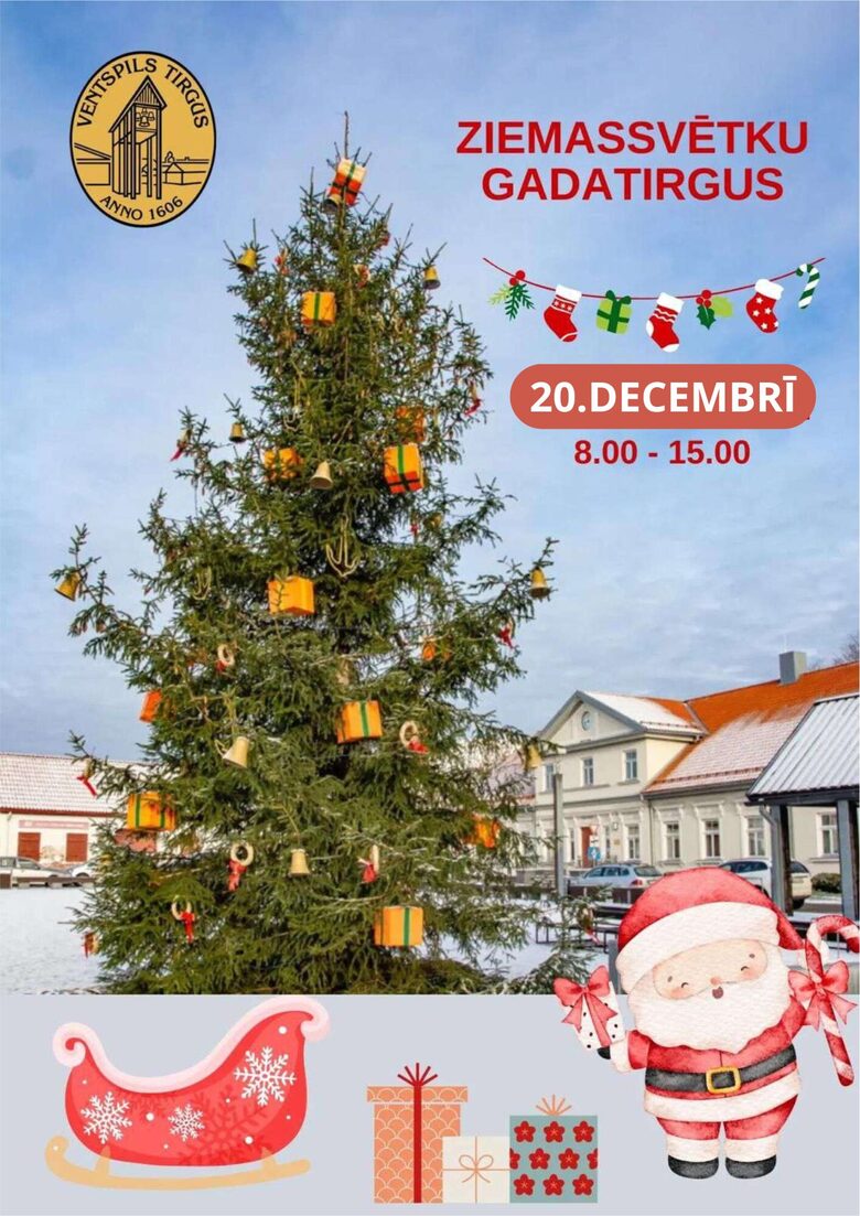 Piektdien, 20. decembrī, Ventspils Tirgus laukumā notiks Ziemassvētku gadatirgus, kas apmeklētājiem būs atvērts no plkst. 8.00 līdz 15.00. Tirgus rosībā valdīs pirmssvētku noskaņa, aicinot ventspilniekus un pilsētas viesus apstāties ikdienas skrējienā un sajust ziemas gaidīšanas laiku.