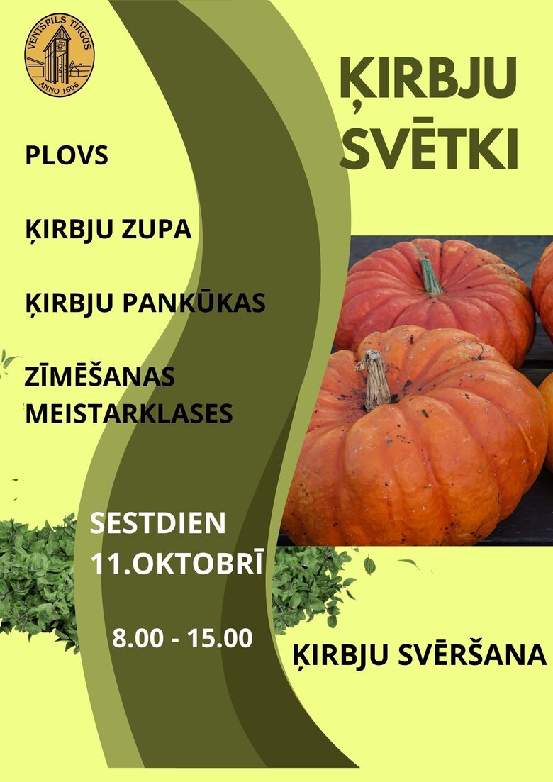 Sestdien, 11. oktobrī, Ventspils tirgū valdīs rudens garšas un krāsas - notiks Ķirbju svētki un ikgadējais ķirbju konkurss. Pasākuma apmeklētājus gaidīs gardi ēdieni, amatnieku darinājumi un radošas meistarklases.