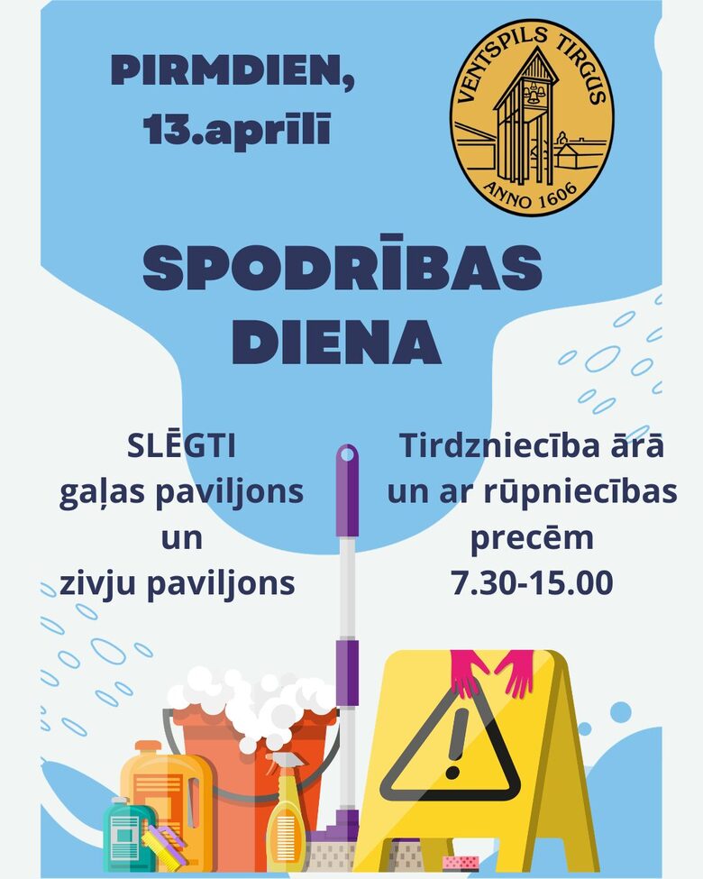 Pirmdien, 13.aprīlī, Spodrības dienā nestrādās Pārtikas un Zivju paviljons. Tajos veiks nepieciešamos tīrīšanas un dezinfekcijas darbus.