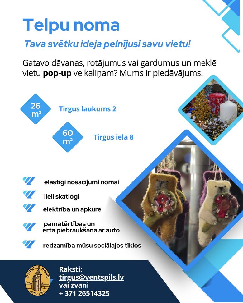 Papildu informācijai lūdzam sazināties ar Ventspils tirgus administrāciju pa tālr. 26514325 vai e-pastu: [email protected]
