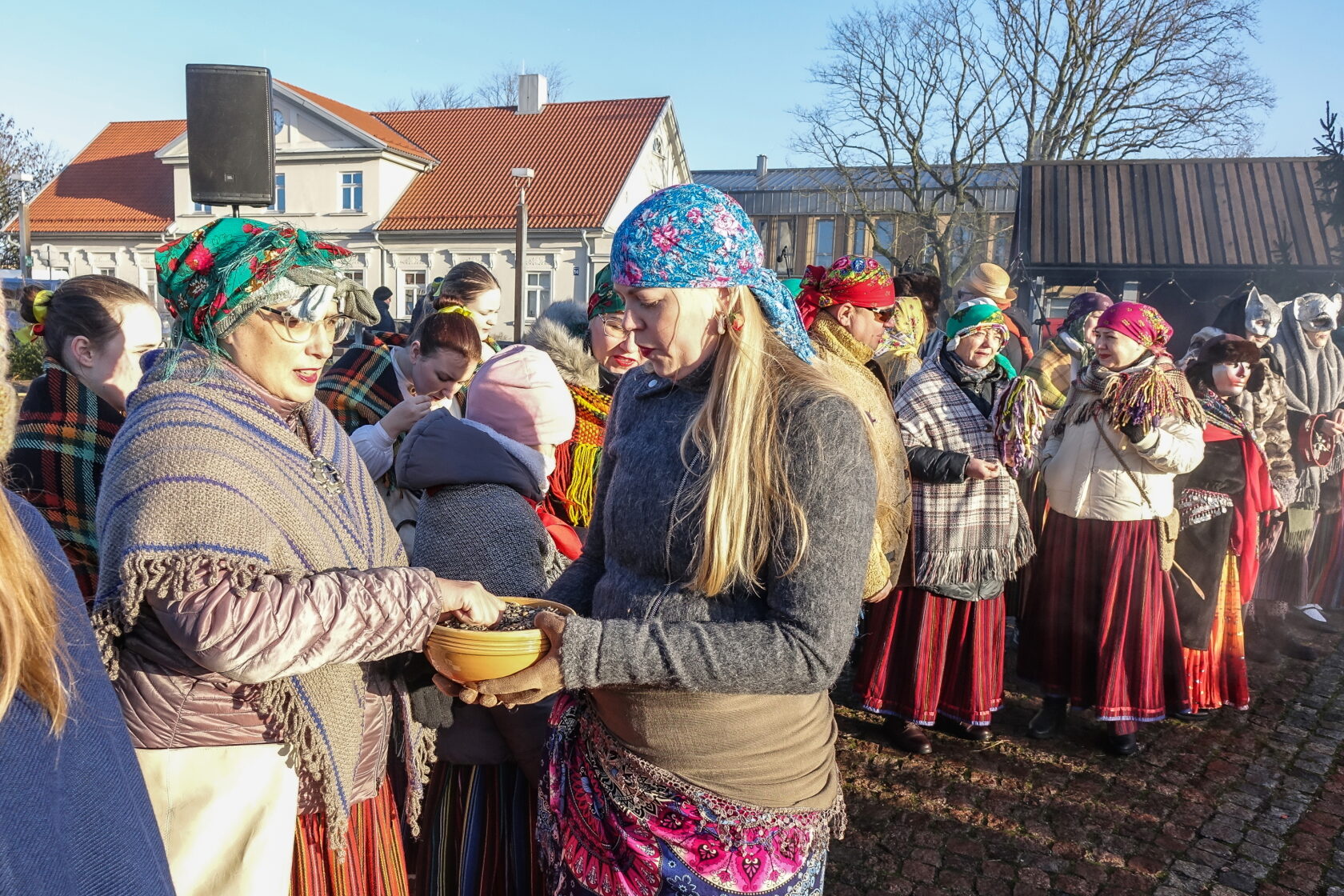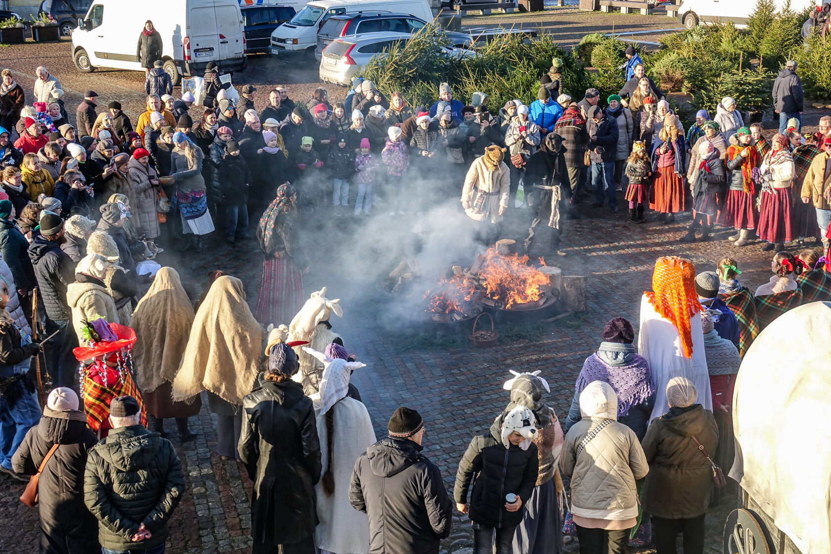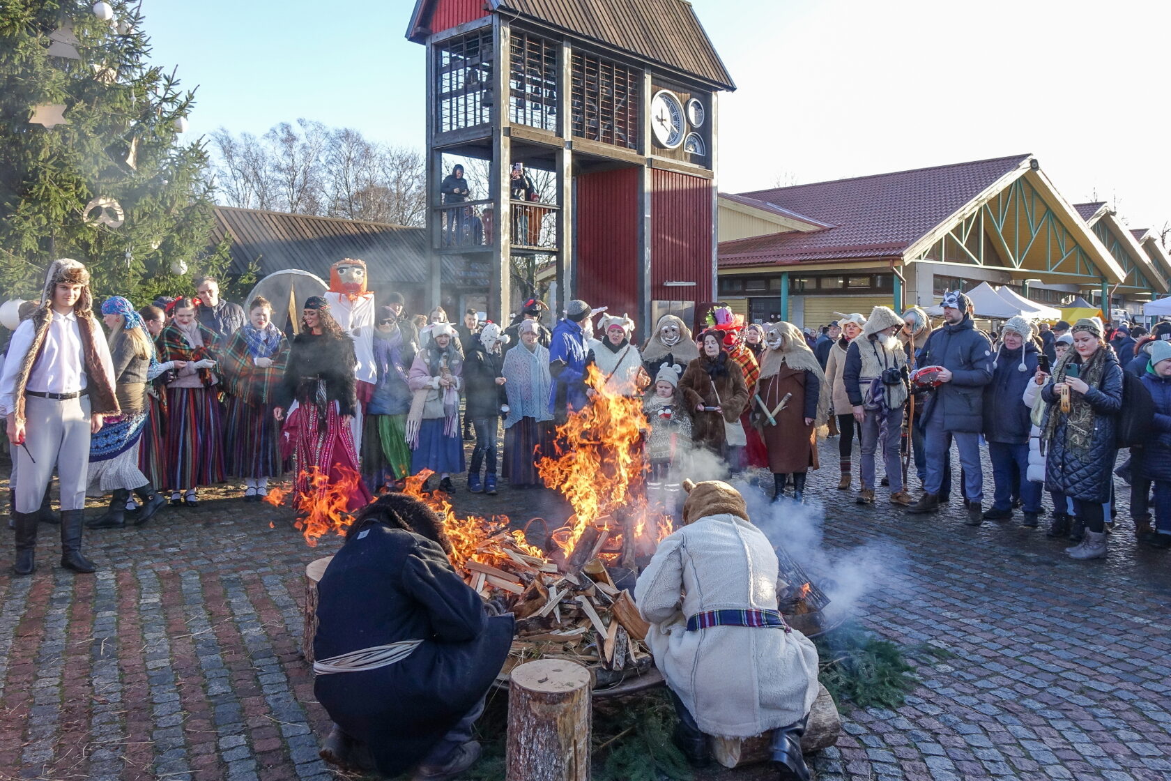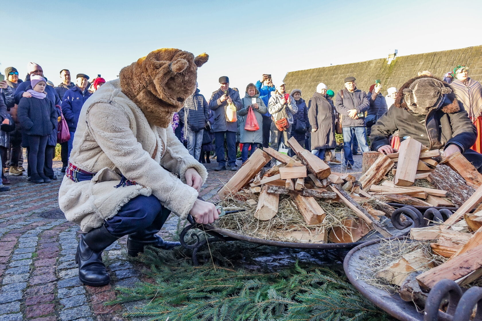 Tradicionālajā bluķa vilkšanā dalībnieki vienojās kopīgās dziesmās, dejās un uguns rituālos, velkot bluķi cauri pilsētai līdz Vecpilsētas Tirgus laukumam.